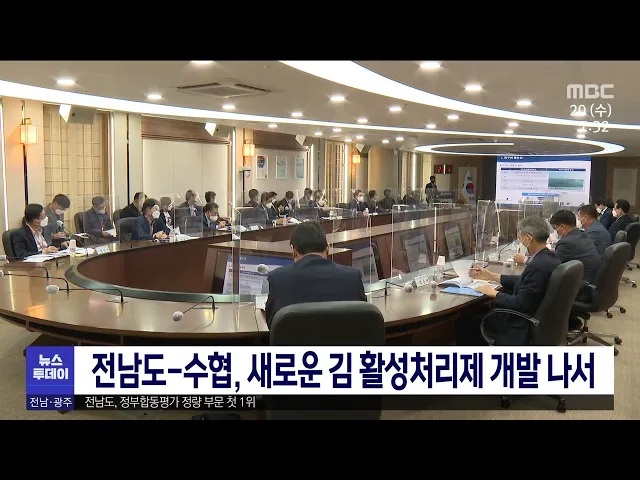 전라남도가 새로운 김 활성처리제와 처리장치 개발에 나섭니다. 전라남도는 김 활성처리제 개발 연구용역 착수보고회를 열고 기존 김 활성처리제 사용실태를 분석해 효율성,경제성,편의성을 고려한 새로운 김 활성처리제를 개발하고, 효율을 높이기 위한 처리장치를 개발하기로 했습니다 또 친환경 중화장치 개발로 사용하...