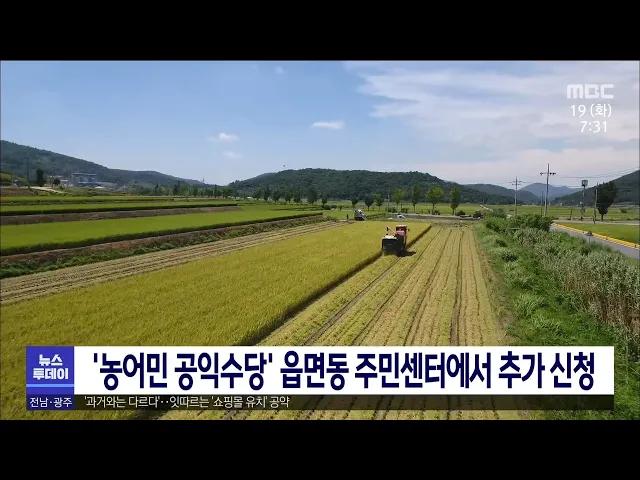 전라남도가 올해 농어민 공익수당을 신청하지 못한 농어민을 위해 오는 22일까지 읍면동 주민센터에서 추가 신청을 받습니다. 신청 대상은 지난해 1월부터 전남에 주소를 두고 1년 이상 지속해서 농어업에 종사한 사람으로 현재까지 21만여 건의 신청이 접수돼 지급되고 있으며 추가 신청한 농어민에게도 오는 5월 중순까...