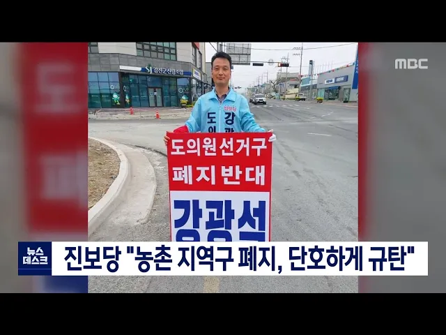 당장 6.1 지방선거에서 광역의원 의석수가 2석에서 1석으로 줄게 된 강진군에서 반발이 나오고 있습니다. 강진군 전남도의원 선거에서 가장 먼저 예비후보로 나섰던 진보당 강광석 예비후보는 "농촌지역구 폐지를 단호하게 반대하며, 진보당은 지역구를 폐지한 민주당을 규탄한다"고 밝혔습니다.