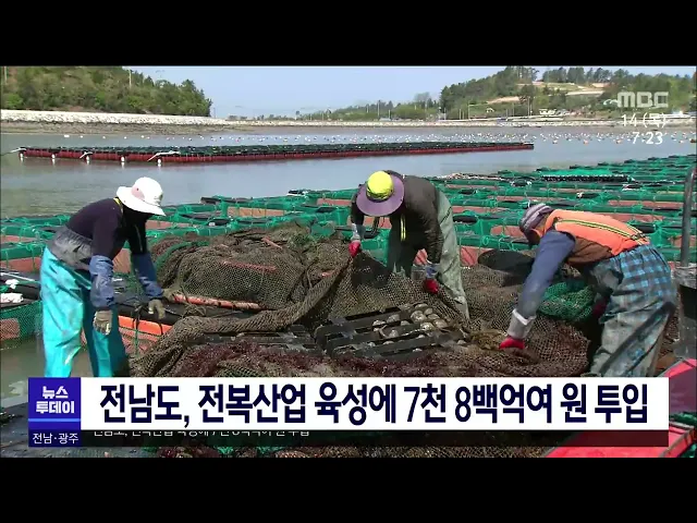 전라남도가 정체에 빠진 전복산업 활성화에 나섭니다. 주요 사업은 생산성을 높이기 위한 시설 자동화와 가공 유통 첨단화, 전문인력 육성, 연구 개발로 오는 2천26년까지 7천8백억여 원을 투입하기로 했습니다. 전남 전복산업은 전국 생산량의 99% 이상을 차지하고 있으나 가격 하락과 밀식 등 어장 환경 악화 등 이중고...