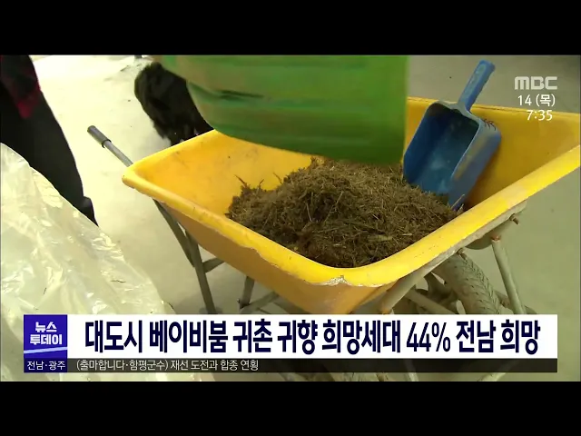 귀촌 귀농을 희망하는 대도시 베이비붐 세대 10명 중 6명은 전남을 선호하는 것으로 나타났습니다. 민주당 전남도당이 한국사회여론조사연구소에 의뢰해 전국 10대 대도시 주민 천 명을 대상으로 조사한 결과 베이비붐 세대 62%가 귀농과 귀촌 의향이 있고 이 가운데 44%는 전남의 귀촌 귀농지로 선택했습니다. 이에 따라 ...