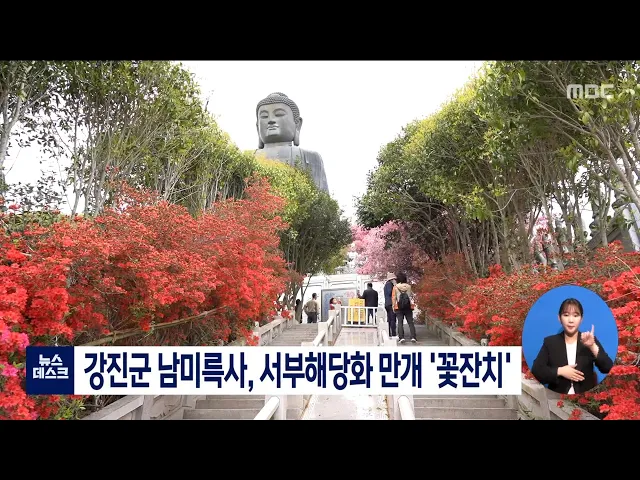 한국관광공사 선정 2021 인스타를 빛낸 올해의 여행지 전국 3위에 오른 강진군 남미륵사가 화려한 꽃들로 물들고 있습니다. 강진군 남미륵사 경내에는 만개한 50만 그루의 서부 해당화가 분홍빛으로 물들었고 철쭉도 이번 주말 절정을 이룰 것으로 보입니다.