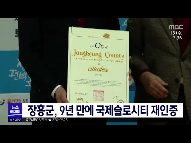 장흥군이 9년 만에 국제슬로시티로 재인증받았습니다. 한국슬로시티본부는 장흥군에 국제슬로시티 인증서와 인증기를 전달했으며, 장흥군은 오는 2027년까지 5년 동안 회원도시의 자격을 유지하게 됩니다. 지난 2007년 아시아 최초로 슬로시티로 인증받았던 장흥군은 재인증에 탈락한 뒤 환경정책 등을 확충해 재가입을 추...