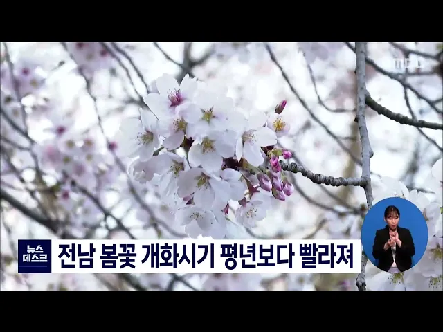 전남지역의 봄꽃 개화시기가 빨라지고 있습니다. 광주기상청에 따르면 전남지역 주요 봄꽃 개화시기는 30년 주기의 평년 값보다 앞섰고, 진달래는 평년보다 사흘, 벚꽃은 평년보다 엿새가 빨랐습니다. 최근 30년새 전남지역의 3월 평균기온은 점차 높아지고 있으며, 봄꽃 축제 개최 시기 역시 차차 앞당겨질 전망입니다.