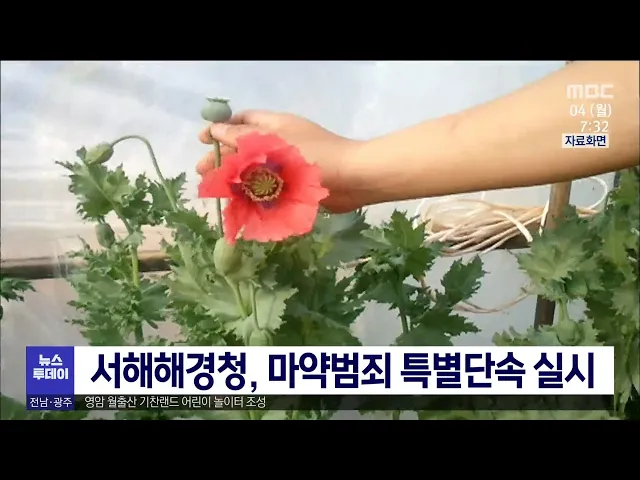서해지방해양경찰청은 마약류범죄 근절을 위해 7월 말까지 특별단속을 실시합니다. 해경은 양귀비 개화기와 대마 수확기에 맞춰 어촌과 섬 지역 비닐하우스와 텃밭 등을 중점적으로 확인하고, 접근이 어려운 장소에는 드론이나 항공기를 투입해 순찰할 예정입니다. 서해해경청에 따르면 최근 3년동안 마약류범죄에 관한 단...