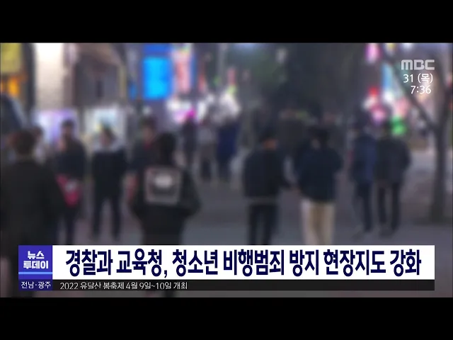 전남경찰청과 전라남도교육청은 청소년 비행범죄를 막고 위기청소년을 보호하기 위해 현장 지도점검을 강화합니다. 전남지역 경찰서와 교육지원청은 청소년들의 흡연과 음주, 탈선 등을 방지하기 위해 오락실과 게임장, 술집 등 청소년 유해업소를 불시 단속하고 있습니다. 또 비행이나 탈선 행위가 지속적으로 발생하고 있...