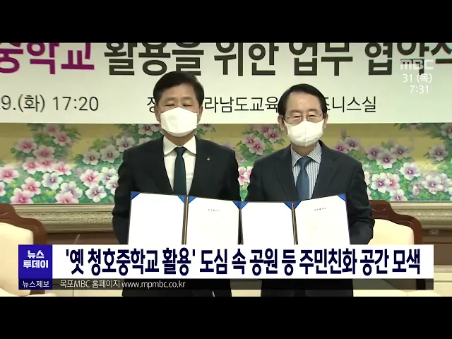 학교가 이전된 뒤 수년간 방치됐던 옛 목포청호중학교 활용방안이 모색됩니다. 목포시와 전라남도교육청은 옛 청호중학교 활용을 위한 업무협약을 체결하고 도교육청은 학교부지 일부를 목포시에 무상 대부하는 한편 사업을 위한 공청회 개최, 시민의견 수렴을 하고 목포시는 재정지원과 사업발굴, 국비 확보 등에 나서기로...