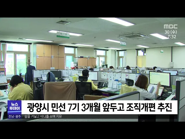 ◀ANC▶ 광양시가 민선 7기를 불과 3개월 여 앞둔 싯점에서 조직개편을 추진하고 있습니다. 시기적으로 적절치 않다는 의견이 시 안팎에서 잇따라 제기되고 있습니다. 김주희 기자가 보도합니다. ◀END▶ ◀VCR▶ 광양시가 일부 조직개편을 추진하고 있습니다. 도시 재생과를 도시과로 변경하고, 안전도시국 내 3개팀으...