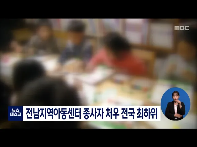 전남지역 아동센터 종사자의 처우가 전국 최하위 수준이란 지적이 제기됐습니다. 민병대 전남도의원은 도의회 5분 발언에서 지역 아동센터 종사자의 평균 임금이 다른 시도와 비교해 월 최고 150만 원 이상 차이가 나고 10년 넘게 일한 종사자의 급여가 최저 임금 수준에 머물러 있다며 호봉제 도입 등 처우 개선 대책이 ...