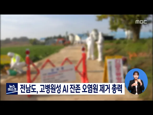 전라남도는 3월 들어서도 전북과 경기도 등 야생조류에서 고병원성 조류인플루엔자 항원이 산발적으로 검출됨에 따라 발생 차단을 위한 잔존 오염원 제거에 나섰습니다. 전라남도는 특별방역대책 기간을 지난달 종료했지만 지역에 겨울 철새가 일부 남아있고 과거 봄철에 발생했던 사례도 있어 위기경보 수준을 '심각단계'...