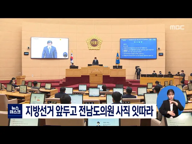 지방선거 레이스가 본격화되면서 단체장 출마를 준비 중인 전남도의원들의 사직이 이어지고 있습니다. 현재까지 전남도의원 1명이 사직을 했으며 3명의 도의원도 최근 사직서를 제출해 오는 24일 본회의에서 의결될 예정입니다. 지방의원이 자치단체장에 출마하기 위해서는 5월 2일까지 사퇴해야 하는데 전체 도의원 58명 ...