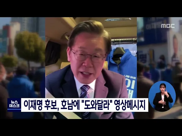 더불어민주당 이재명 대선 후보가 영상 메시지를 통해 호남에 지지를 호소했습니다. 이재명 후보는 어제 부산에서 대구로 가는 차량 안에서 영상 메시지를 통해 호남은 대한민국 민주주의와 개혁을 책임져 왔다며 조금만 더 도와달라고 호소했습니다. 이 후보는 호남에 한 번 더 가서 인사 드리려고 했는데 수도권 사정이 ...