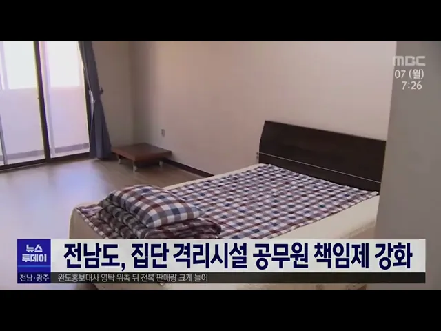 전라남도는 코로나19 집단격리 시설의 감염 확산 방지를 위해 도입한 공무원 책임제를 강화하기로 했습니다. 공무원 책임제는 집단격리 시설의 방역관리가 철저히 이뤄지도록 시설별 담당 공무원 1명을 지정해 매일 현장 점검을 하는 제도입니다. 전남도는 지난 2월 요양병원, 요양원 등에서 고위험군 감염 차단을 위해 공...