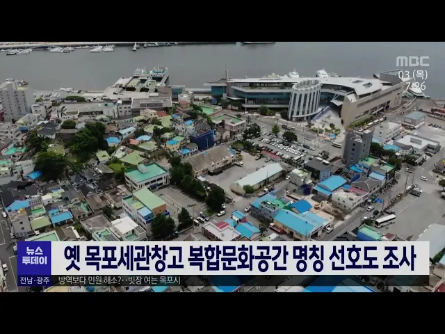 목포시가 옛 목포세관창고 복합문화공간 명칭 선정을 위한 선호도 조사를 실시합니다. 목포시는 전체 270개 제안 명칭 가운데 중복 사례를 제외한 256건을 목포시 홈페이지를 통해 오는 6일까지 시민 설문조사를 실시할 계획입니다. 목포시는 다음달 복합문화공간 개관을 앞두고, 조만간 음식점 운영자도 발표할 예정입니다...
