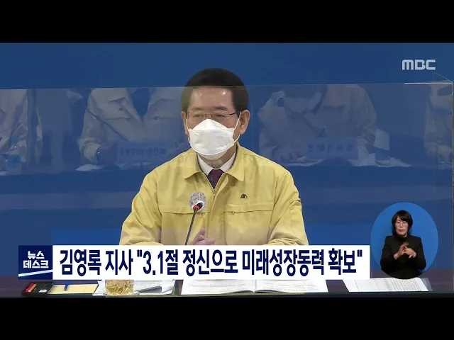 김영록 전남지사가 3.1절 기념사를 통해 신해양*친환경 수도로 전남을 발전시키겠다고 밝혔습니다. 김 지사는 "103년 전 신분과 계층, 지역과 이념을 초월해 자주독립을 외쳤고, 세계 10위권 경제강국과 민주국가로 설 수 있는 원동력이 됐다"며, 전남의 100년 성장동력 확보를 위해 노력하겠다고 말했습니다.