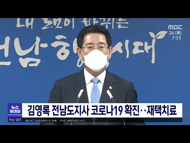 김영록 전남도지사가 코로나19에 확진됐습니다. 김영록 전남도지사는 어젯밤(23) 10시 20분쯤 PCR검사 결과 양성 판정을 받았으며 현재 별다른 증상은 없어 관사에서 재택치료를 받을 것으로 알려졌습니다. 전라남도는 전 직원이 자가검사키트 검사를 한 뒤 음성 판정이 나올 경우 출근하도록 하고 김 지사는 재택치료기간...