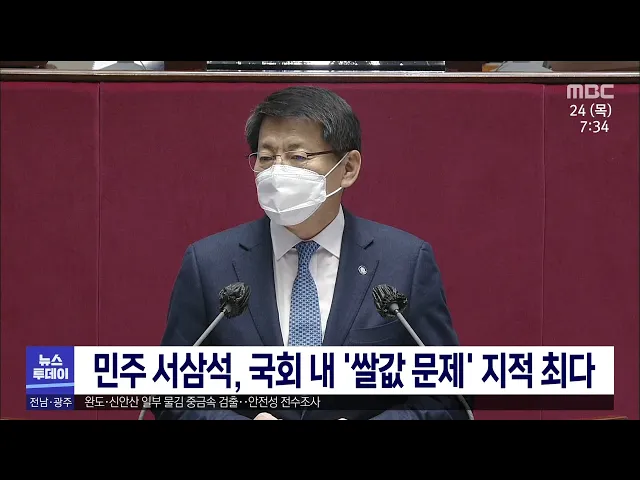 쌀값 하락 속에 국회에서 쌀가격을 가장 많이 거론한 국회의원은 서삼석 의원인 것으로 나타났습니다. 국회회의록 빅데이터를 통해 21대 국회에서 쌀값 발언 횟수를 조회한 결과 민주당 서삼석 의원이 99차례로 가장 많았고, 이개호 의원이 73번, 김승남 의원 28번, 신정훈*윤재갑 의원이 각각 24번과 15번 쌀값을 지적했습...