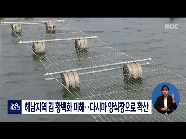 해남지역 김 황백화 피해.. 다시마 양식장으로 확산