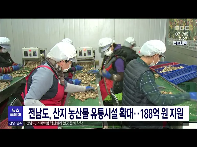 전라남도가 산지 농산물 유통 기반시설을 확충하기위해 올해 백88억 원을 투자합니다. 국가공모사업으로 추진되는 농산물산지유통센터,APC와 도 자체 사업인 중 소형 저온 저장고, 올해 신설된 농산물 선별시설 지원사업 등 6개 사업을 추진합니다. 또 개별 농가 중심이던 농산물 생산,유통 구조를 공동 선별, 출하 체계로...