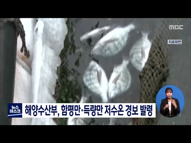 한파가 이어지면서 함평만과 인근 해역, 득량만에 저수온 경보가 발령됐습니다. 저수온 경보가 내려진 해역은 수온이 2.9도에서 3.4도 정도로 낮게 유지되고 있습니다. 또한, 전남 서부 연안과 일부 내만에는 저수온 주의보가 발령된 상태여서 양식장 등의 동해 피해에 각별한 주의가 당부됩니다.