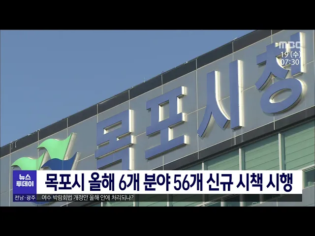 목포시가 올해 56개 시책을 마련해 새로 시행합니다. 목포시가 올해 새롭게 추진하거나 달라지는 시책은 일자리·경제 7건 ,보건·복지·여성 21건 등 6개 분야 56건입니다. 세부적으로는 청년 부부 결혼축하금과 반려견 동물등록비 지원, 생애 최초 주택구입 취득세 감면 연장 등이 포함돼 있습니다.