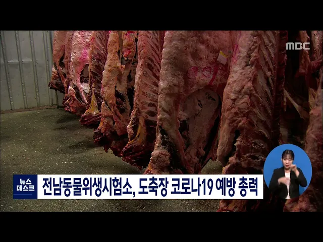 전라남도동물위생시험소는 최근 도축장과 육류가공업체에서 코로나19 확진자가 계속 발생함에 따라 방역수칙 준수여부와 위생점검에 들어갑니다. 전남도동물위생시험소는 도축장에 파견한 검사관을 통해 철저한 점검으로 코로나19 발생을 사전에 차단하고 육류 성수기인 설 명절 원활한 축산물 유통이 이뤄지도록 할 방침입...