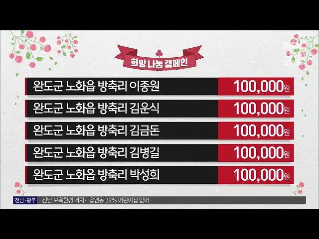 오늘의 간추린 소식입니다. 무안군이 지난해 27개 학교, 2천 3백여명의 학생에게 학생 한명에 6만원 씩 앨범 구매비를 지원한데 이어 올해도 초중고 학생들의 졸업 앨범비를 지원합니다. --------- 해남군이 삼산면에 9홀 규모의 파크골프장을 18홀로 확장해 문을 열고 산이 파크골프장 조성사업에 착수하는 등 파크골프장 ...
