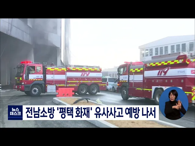 전남소방본부는경기도 평택시 신축공사장 화재와 관련해유사사고 예방과 인명피해 방지를 위한대책마련에 나섰습니다.소방당국은도내 창고시설 2천 286개소 가운데냉동,냉장창고 250개소와 신축 중인 3천㎡이상 대형 공사장 164개소의 화재안전관리를 강화하기로 했습니다.특히 신축 공사장에 대해선 소방특별조사와 매뉴얼...