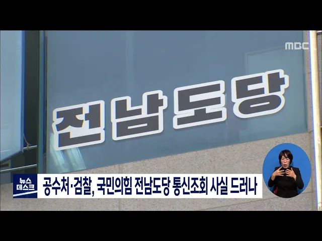 공수처 등의 통신자료 조회 파문이 전남 정치권으로도 확산될 전망입니다. 국민의힘 전남도당에 따르면 공수처는 지난해 10월 13일, 김화진 전남도당위원장의 통신자료를 통신사로부터 제공받았고, 인천지검 역시 지난해 11월 8일 시군 당협위원장 2명의 주민번호와 주소 등의 통신자료 정보를 제공받은 것으로 나타났습니...
