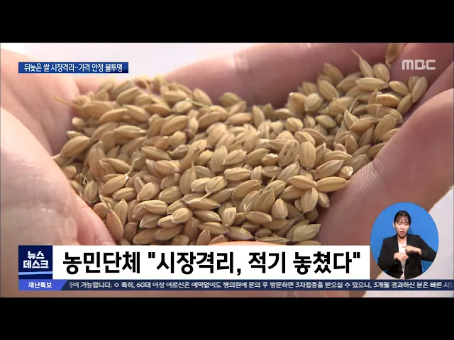 ◀ANC▶정치권과 농민단체의 압력에 떠밀려정부가 쌀 초과 생산량을 매입하는 시장 격리 방침을 밝혔습니다.그러나 시장 격리 적기를 놓쳐가격 안정에 도움이 될지 의문입니다.문연철 기자가 취재했습니다.◀END▶◀VCR▶정부는 올해 쌀 초과생산량 27만 톤 가운데20만 톤을 다음 달에 시장에서 격리하기로 했습니다.나...