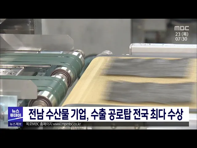 2021년 전국 수산물 수출 공로탑을 받은51곳 가운데 전남 수산물 기업이 14곳으로전국 최다를 기록했습니다.어업회사법인 케이푸드 주식회사가김 수출로, 수출액 전국 4위를 달성해2천만불 공로탑을 수상한 것을 비롯해700만불탑 4곳, 500만불탑 3곳, 300만불탑 1곳, 100만불탑은 5개 업체가 수상을 했습니다.