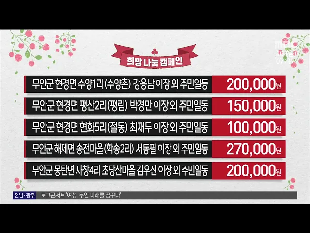 무안군이 주관한 토크콘서트가 ‘여성! 무한 미래를 꿈꾸다’라는 주제로 열렸습니다. 비대면으로 열린 이번 강연은 경력 단절, 사회적 고립감과 같은 여성들이 겪는 어려움에 대해 전문가와 참석자의 진솔한 공감과 위로의 시간으로 꾸며졌으며 목포MBC와 무안군 공식 유튜브를 통해 생중계됐습다.