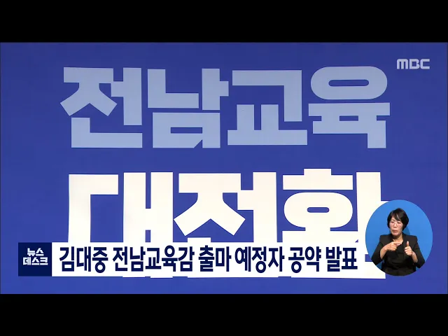 내년 전남교육감 선거 출마예정자인김대중 전남교육자치플랫폼 대표가공약을 발표했습니다.김대중 대표는오늘(8) 전남도의회에서 기자회견을 갖고그린스마트 사업 등의 학교시설 개선사업에 전남지역 작은학교들이 빠져 있는 점을비판하며 내년 전남교육감 선거 1호 공약으로\"작은학교 살리기에 앞장서겠다\"고밝혔습니다....