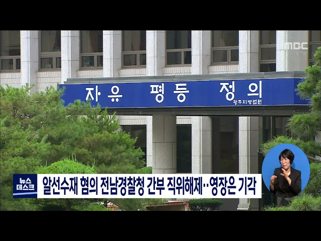 법원이 알선수재 혐의를 받고 있는 전남경찰청 간부에 대한 구속영장을 기각했습니다. 광주지법은 경찰 신분을 이용해 업자로부터 수천만원을 받은 의혹이 있는 전남경찰청 A 경감이 잘못을 모두 인정했고 증거인멸을 시도한 정황이 없다며 검찰이 청구한 사전구속영장을 기각했습니다. 한편 전남경찰청은 A 경감을 직위해...