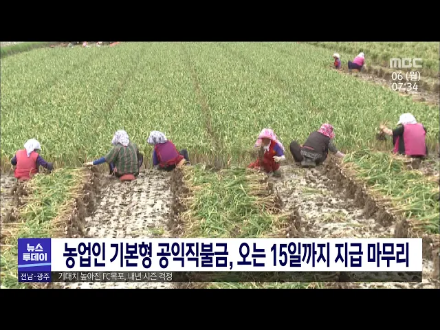 코로나19 등으로 어려운 농업인의 경영 안정을 위한 '기본형 공익직불금' 지급이 오는 15일까지 마무리됩니다. 기본형 공익직불제는 일정 자격을 갖추고 준수사항을 이행하는 농업인 등에게 지급하는 것으로 전남에서는 대상인 19만 2천 명 가운데 82퍼센트에게 3천 625억 원을 조기 지급했습니다.