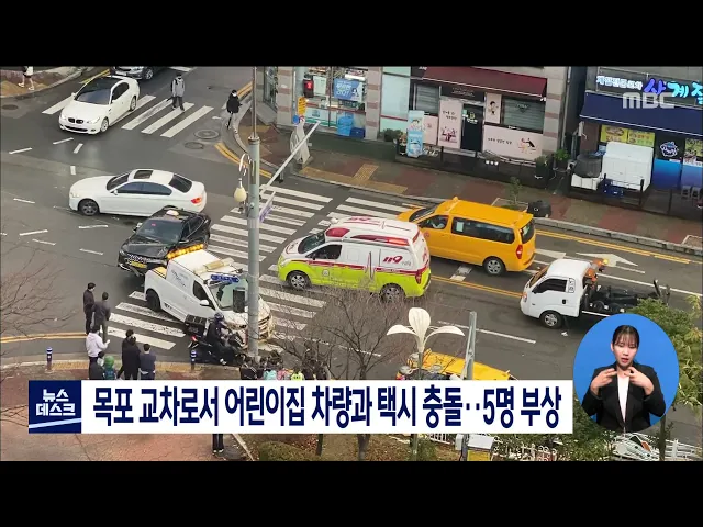 목포 교차로서 어린이집 차량과 택시 충돌.. 5명 부상