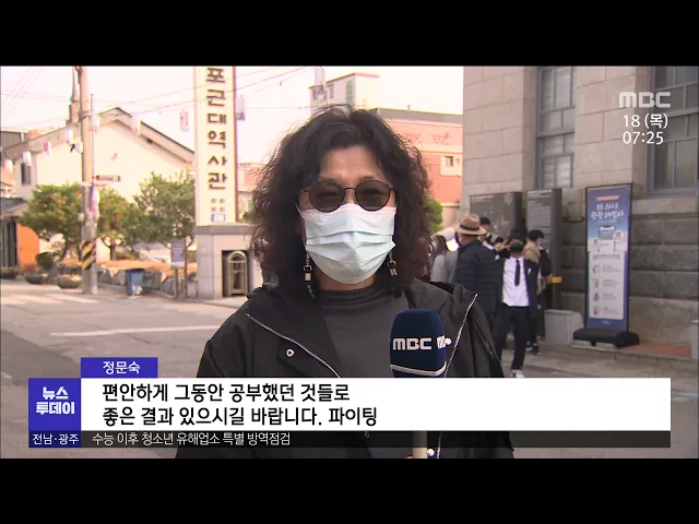 ◀ANC▶수험생들 지금 긴장 많이 하시고계실텐데요. 그동안 열심히 준비하신 만큼모두 좋은 결과 있으시길 바랍니다.수험생들 모두 힘내라는 다양한 응원 목소리 들어보시겠습니다.◀END▶◀INT▶ 정문숙\"수험생 여러분 어렵고 힘든 코로나 상황 속에서도 열심히 최선을 다해서 공부했는데 긴장하지 마시고 편안하게 그...