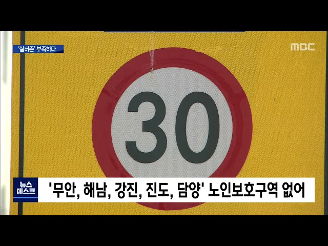 ◀ANC▶어린이보호구역 '스쿨존'은 익숙하지만노인보호구역 '실버존'을 아시는분들은많지 않으실 겁니다.전남은 고령화율이 가장 높지만 실버존은 전국 평균보다 훨씬 적어오히려 노인 안전에 취약해 보입니다.양정은 기자가 취재했습니다.◀END▶목포시 하당동의 한 도로가.인근 노인복지회관을 오가는어르신들의 안전을...