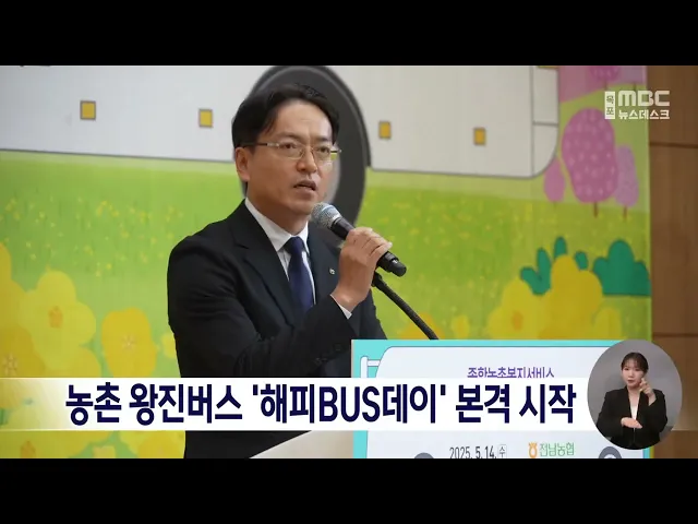 농촌왕진 버스인'2025 해피BUS데이 발대식'이 오늘(14일)장흥군에서 열려 올해 농촌 의료사막화 해소에 시동을 걸었습니다.‘해피BUS데이’는 의료·복지 접근성이 낮은 농촌 주민에게 직접 찾아가는 복지서비스를 제공하는 사업입니다.전남도 농촌 왕진버스 운영은 올해 13개 시군, 68개 읍면, 40회 만 5천여 명을 지원할 계...