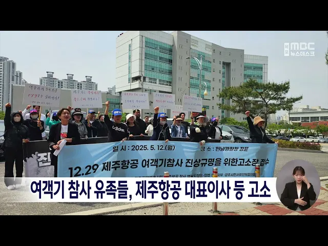 1229 제주항공 여객기 참사 유가족과광주지방변호사회 제주항공참사 법률지원단이오늘(13) 국토부장관과 제주항공 대표이사 등사고 책임자들을 고소했습니다.유족들은 "제주항공 참사는 단순한 사고가 아니라 방지해야 할 위험에 대한소홀한 관리가 초래한 중대시민재해였다"며박상우 국토부장관과 김이배 제주항공 대표이...