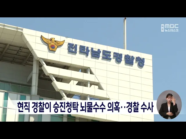전남경찰청 반부패경제범죄수사1대는현직 경찰이 승진을 위해 상관에게 금품을 준 의혹을 수사하고 있습니다.여수경찰서 소속 경위는 지난해 말 근무성적 평정 과정에서 직속상관인 모 경감에게 금품을 준 의혹을 받고 있으며, 경찰은 해당 경위 목소리가 담긴 녹취 파일을 확보해금품이 오간 정황을 들여다보고 있습니다.