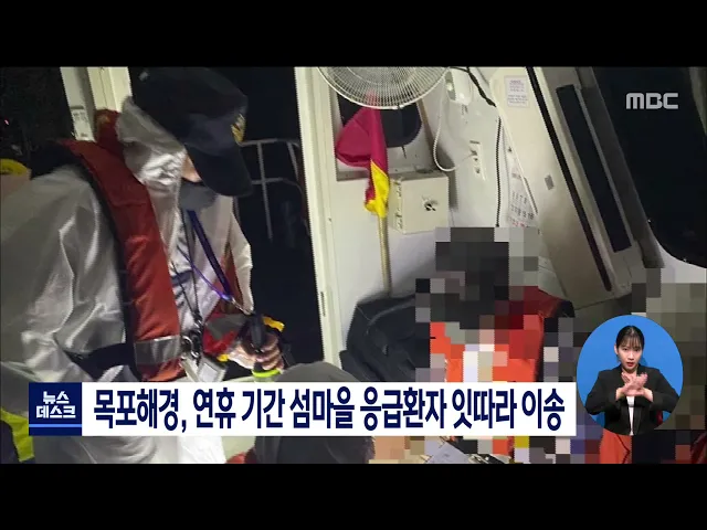 연휴 동안 잇따라 발생한 섬마을 응급환자 8명이 해경에 이송됐습니다. 목포해경은 어제 낮 10시 5분 쯤 진도군 관사도에서 80대 여성 A씨가 의식이 미약하다는 신고를 받고 출동해 A씨를 육지로 긴급 이송했습니다. 해경은 같은날 낮, 목포 달리도와 신안군 소악도에서 목과 허리등에 부상을 입은 60대 섬마을 환자들을 ...