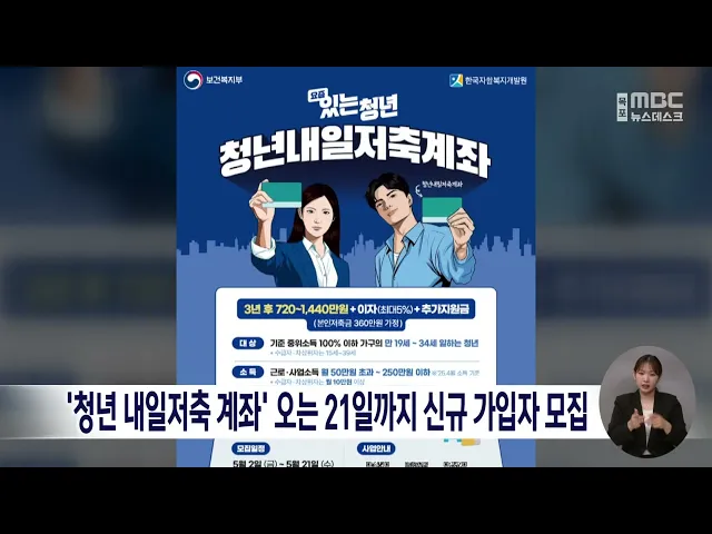 '청년 내일저축 계좌' 오는 21일까지 신규 가입자 모집