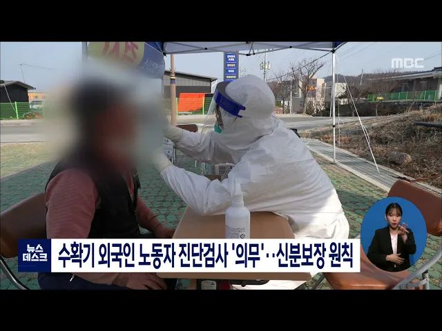 가을철 수확기를 맞아 농업 분야 외국인 고용사업장 종사자는 2주에 1차례 무료로 진단검사를 받아야 합니다. 전라남도는 지난 6일부터 도내 외국인 고용사업장 830여 곳에 대해 진단검사를 의무화하는 행정명령을 내렸으며, 감염병 확산 방지를 위해 불법체류 여부와 관계없이 신분보장을 원칙으로 백신 접종까지 유도할 ...
