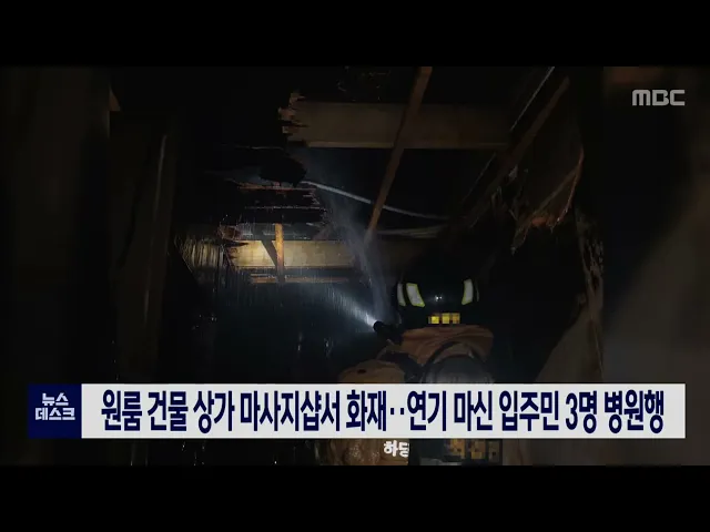 원룸 건물 상가 마사지샵서 화재.. 연기마신 입주민 3명 병원행