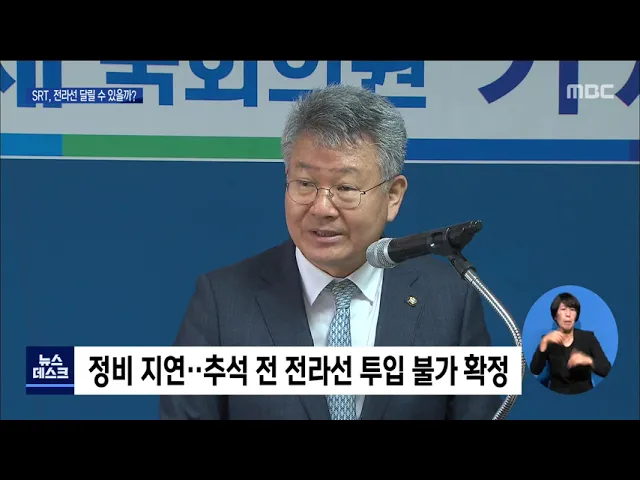 ◀ANC▶추석 전까지 전라선에 투입될 예정이었던 SRT 열차의정비가 지연되면서 앞으로의 운행 계획이 불투명해진 것으로 드러났습니다.그간 SRT 투입을 반대해온 철도노조가 반발하기 시작하면서 논란이 일고 있습니다.강서영 기자입니다. ◀VCR▶추석 전까지 전라선에 SRT를 투입하려던 계획은정치권을 중심으로 확실시...