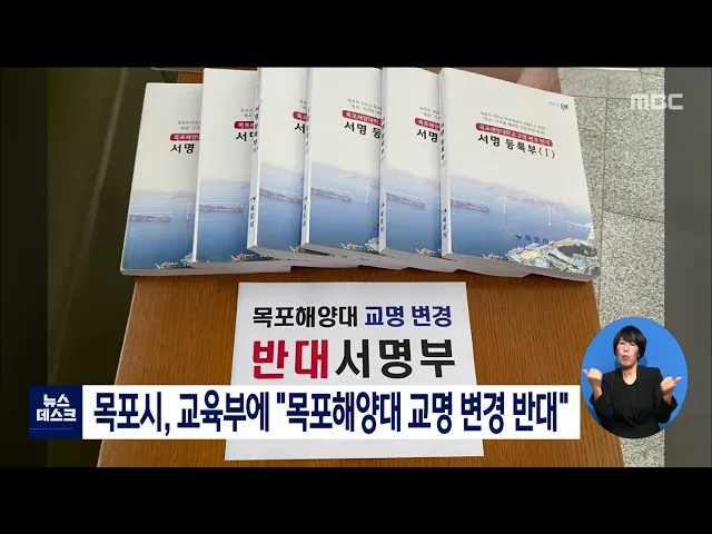 목포시가 목포해양대 교명 변경과 관련해 교육부에 반대 의사를 전달했습니다. 목포시는 교육부를 방문해 지난 6월 목포해양대학교가 교수회의를 통해 결정한 교명 변경에 대해 "지역명을 빼는 교명 변경보다 대학의 경쟁력을 높이는 것이 우선"이라며 반대 의견을 표명하고, 시민 1만3천여명이 참여한 '반대 서명부'를 전...