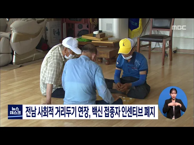 전라남도는정부 방침에 따라 사회적거리두기 3단계를9월 5일까지 2주동안 연장합니다.전라남도는코로19 확산 방지를 위해 사적모임 제한에백신 접종자 제외 인센티브제를 폐지하고 다만 경로당은 접종 완료자를 중심으로외부인 출입 금지 등 방역수칙을 지키는 조건으로 운영을 허용합니다.또 학원을 포함한 방역 취약시설...