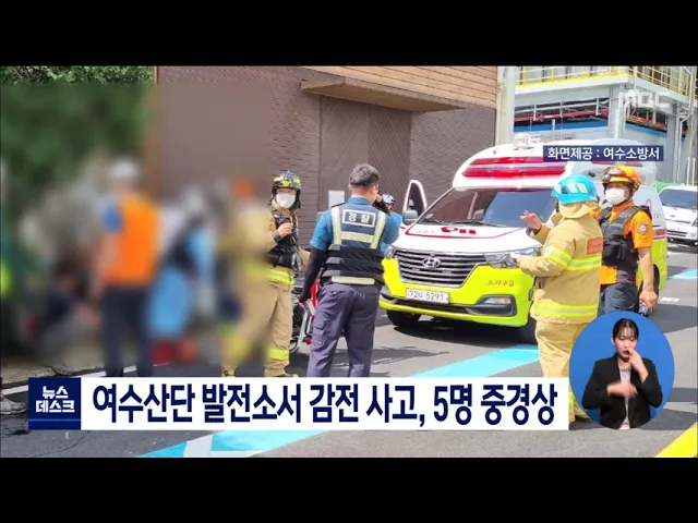 오늘(20) 오전 10시 20분쯤 여수시 월내동 여수산단 내 한 발전소에서 감전 사고가 발생했습니다. 이 사고로 현장 관계자 5명이 중경상을 입었지만 생명엔 지장이 없는 것으로 알려졌습니다. 경찰은 발전소 전기 설비를 점검하던 도중 사고가 난 것으로 보고 정확한 사고 경위를 조사하고 있습니다.///