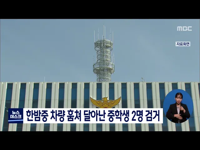 한밤중 차량 3대를 훔친 중학생들이 경찰에 붙잡혔습니다. 어젯밤 10시쯤 목포시 옥암동 한 초등학교 앞에서 중학교 2학년 A군과 1학년 B군이 승용차 3대를 번갈아 훔쳐 타고 돌아다니다 신고를 받고 출동한 경찰에 2시간 40분 만에 붙잡혔습니다. 경찰은 붙집힌 중학생들을 상대로 정확한 사건 경위를 조사하고 있습니다.